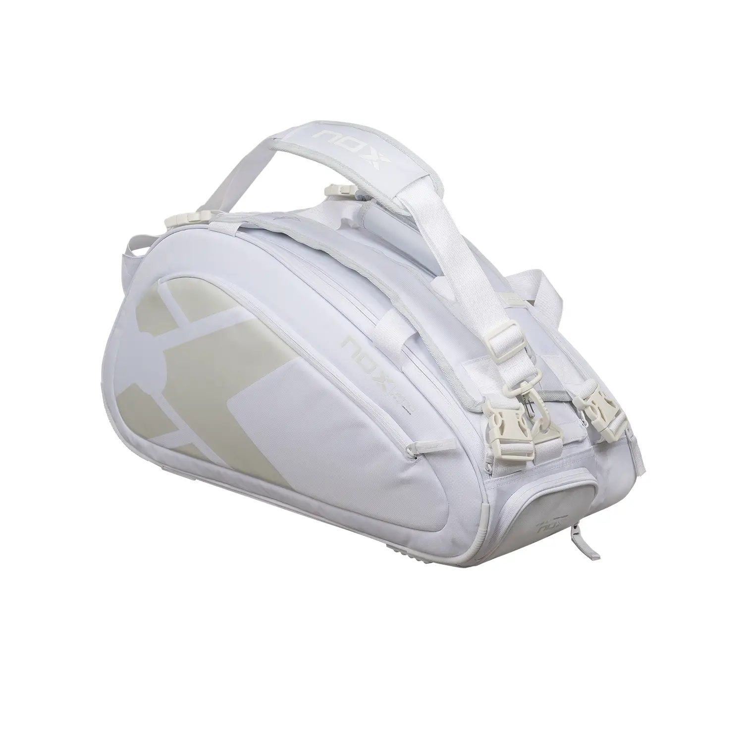 Nox AT10 Team padelbag u bijeloj boji savršen je izbor za one koji žele kombinirati funkcionalnost i stil u svojim padel mečevima i turnirima. Dizajniran posebno za legendarnog Agustína Tapiu, ovaj model nudi neusporediv kapacitet i optimalnu organizaciju vaših stvari.